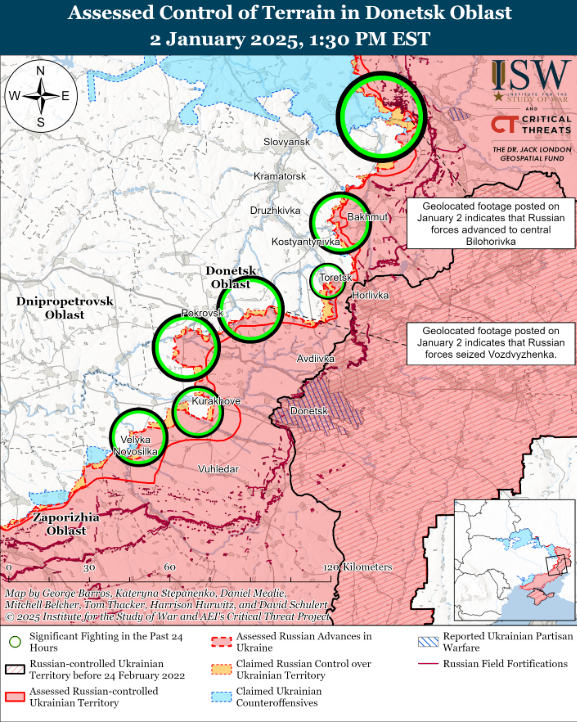Ukrainian defenders are practically surrounded on three sides in both cities. This has been the case in Pokrovsk since the summer, where fighting has been going on for over a year. After overcoming the natural barriers posed by the Kazennyj Torec River in the west and the Solona River in the south, they brought the defenders into a dangerous cauldron in July and August and are threatening their northern escape and supply route.