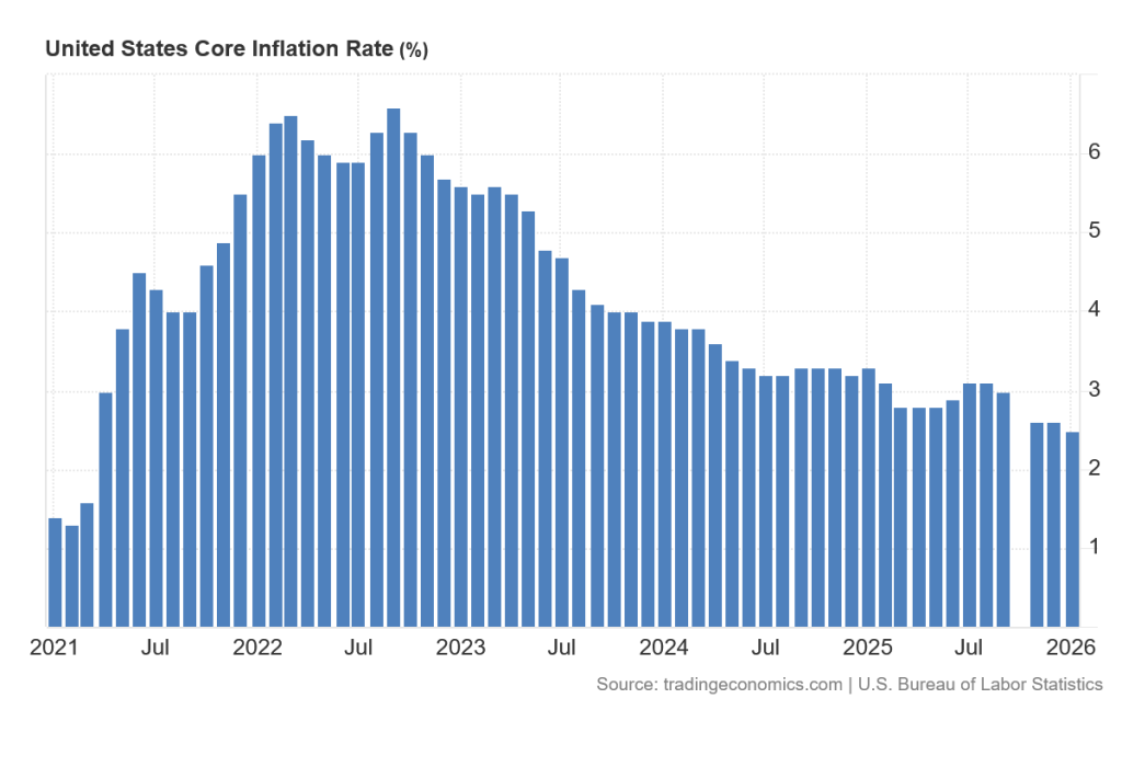 The absence of a narrative was confirmed by US inflation data for January 2026, which we learned about at the end of the week. Headline inflation fell to 2.4 percent in January. The 2 percent inflation target is within reach. Core inflation, excluding food and energy, fell to 2.5 percent, the lowest level since April 2021, when inflation problems caused by the economic slowdown during Covid began.
