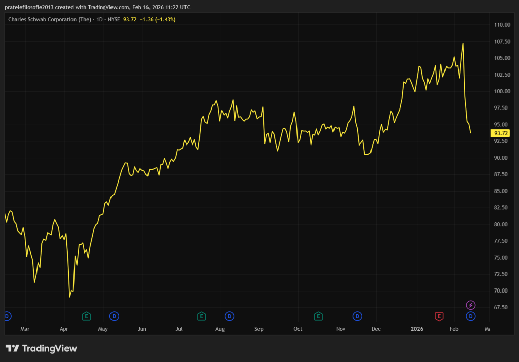 Charles Schwab's stock price performance over the last year. Source: TradingView