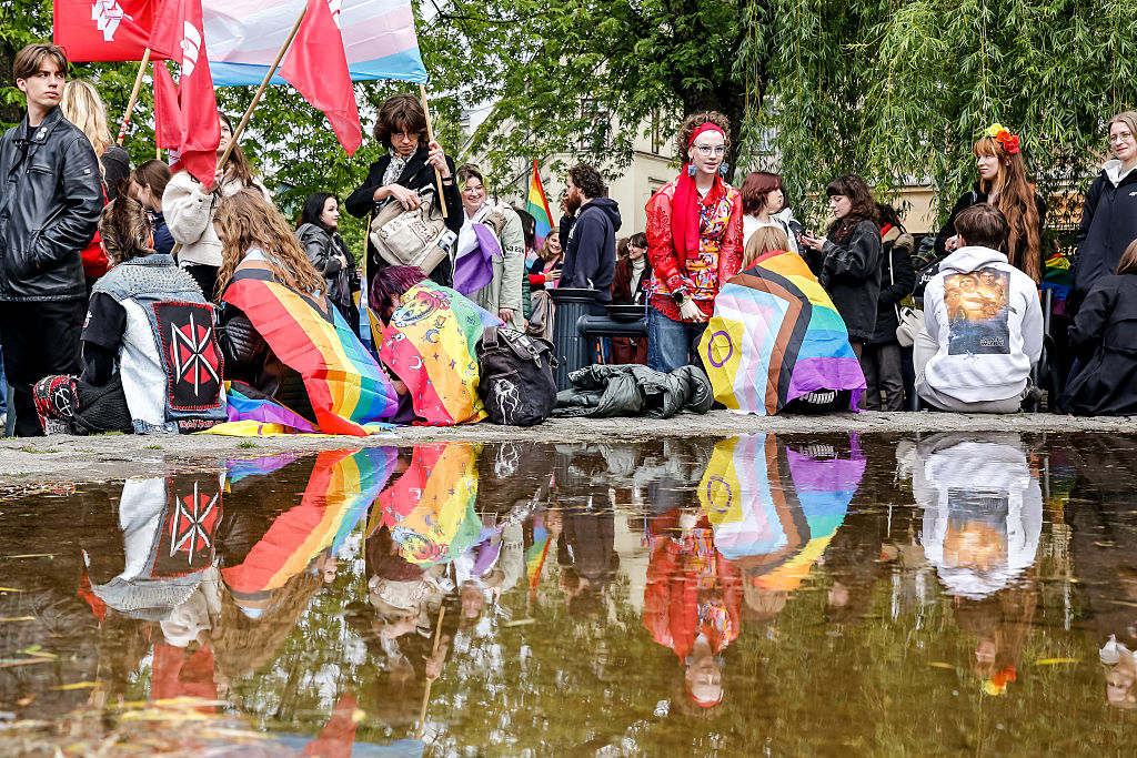 Thousands of people marched with LGBTQ People flags during the Pride Parade on the streets of Old Town of Krakow, Poland on May 17, 2025. Photo: Dominika Zarzycka/NurPhoto via Getty Images
