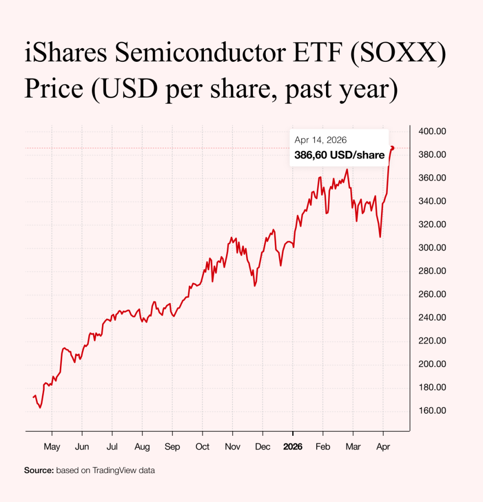This is illustrated by the performance of the SOXX index, which aggregates companies in the semiconductor sector. Despite a possible helium shortage, the index is at all-time highs. The war in Iran has not weakened faith in the digital future but, on the contrary, strengthened it.